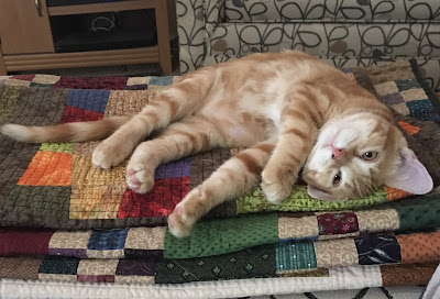 But, I did get my sewing/craft room cleaned out. I think I was working on it when I last posted. It's a good feeling to be done. I donated, gave away, and threw out so much...unbelievable how much one accumulates. Right? And, I am trying to make the room safe for Stitch. He loves pulling pins out of pincushions...not a good thing for him to be doing. I mostly keep the door shut when I'm not in there. Otherwise, I need to put so many things away...which proves to be counter-productive. Setting up and putting away each time I want to get something done. It will all work out, though.